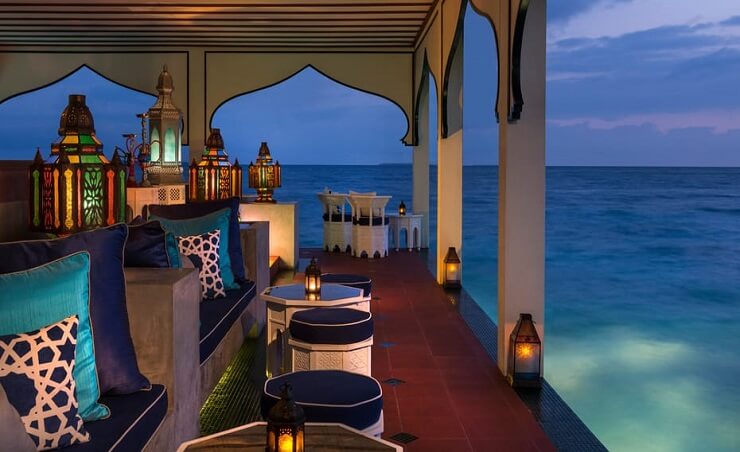 水煙酒吧,坐落在Al Barakat較低層的潟湖上面相大海,透過華麗的燈籠和擺設為景點的雞尾酒、土耳其咖啡和水煙營造出濃郁的氛圍。