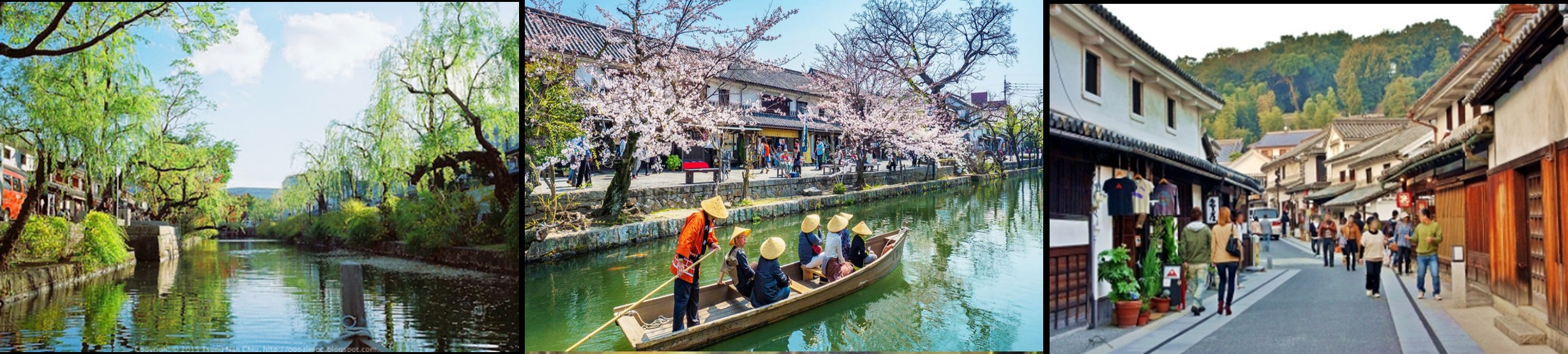 全天:搭乘火車前往「倉敷站」,步行至「倉敷美觀地區」。體驗白牆倉庫與柳樹垂岸的水鄉風情,可乘坐倉敷川遊船、參觀大原美術館。